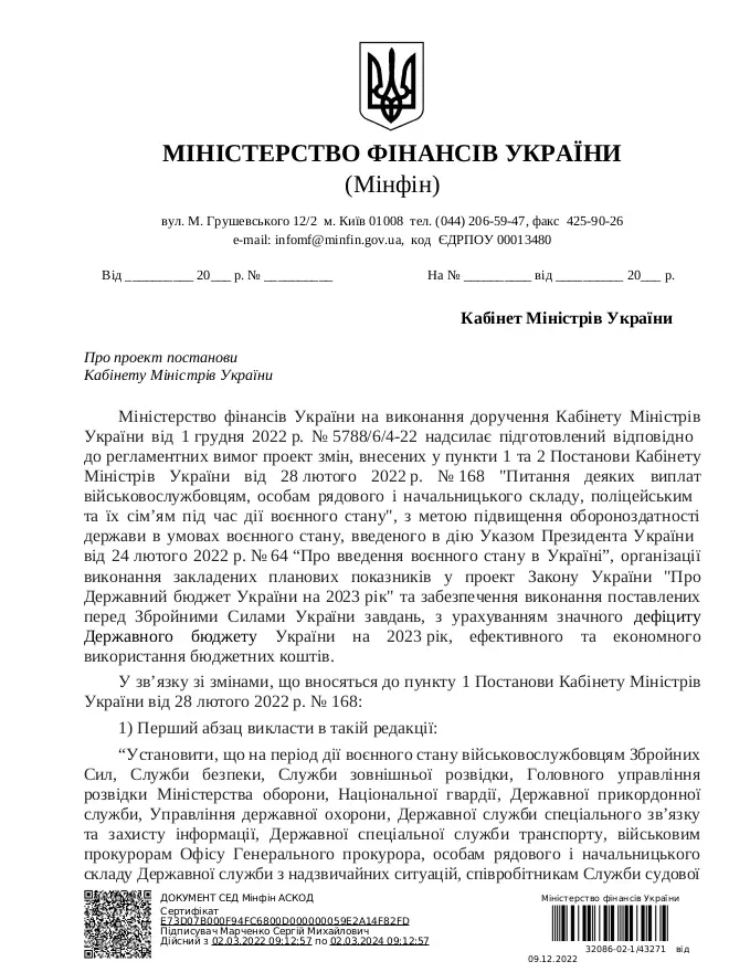 Следующим этапом стал Приказ министра обороны Украины от 25.01.2023 года № 44 «О внесении изменений в порядок выплаты денежного обеспечения военнослужащим ВСУ и некоторым другим лицам», срезающий все надбавки у тех, кто не находится непосредственно на линии боевого соприкосновения. В итоге с 1 февраля у всех, кто находится в тылу, зарплаты срезали на 30 тысяч гривен и более.